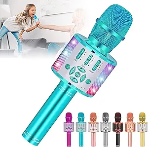 [Review&QnA] Amazmic Kids Karaoke Microphone Machine Toy Bluetooth Microphone Portable Wireless Karaoke Machine Handheld with LED Lights, Gift for Children Adults Birthday Party, Home KTV(Blue)