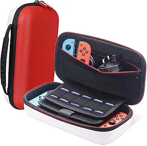 [Review&QnA] Carrying Case for Nintendo Switch,Large Switch Game Case with 20 Game Card Slots,Fit Original Charger AC Adapter,Hardshell Protective Travel Pouch Bag for Nintendo Switch Console and Accessories,Red