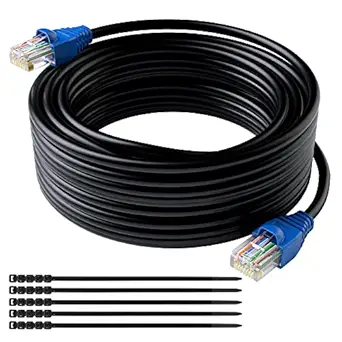 [Review&QnA] Cat5e Outdoor Ethernet Cable Heavy Duty 200 Feet Indoor Cat 5E Cord (25ft to 250ft) Waterproof UV LLDPE Douable Jackets for in Wall, Direct Burial, Internet Router, POE Camera with 25 Ties - 200 ft