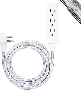 - Décor – The braided fabric power cord comes in a gray and white chevron pattern that can add a personalized touch to your home décor or office space. The plug and outlets for this unit feature a corresponding white finish to further accentuate the color scheme.