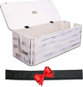 - EYE-CATCHING HANDMADE CRAFTSMANSHIP- Each cable box is hand finished by artisans with a smooth white rustic mango wood finish to match with any decor. Large enough for most surge protectors at 16” long, 5.1” high 6.8” wide. Even our packaging is hand assembled!
