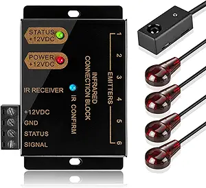 - Convenient IR confirmation LED with dual frequency to support infrared signals from a wider range of IR remote control such as cable box setup box STB; Support up to six emitter output connections