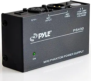 [Review&QnA] Universal Compact Phantom Power Supply - Selectable +12 / +48 Volt Regulated Single Channel Home Condenser Microphone Power Supply Box, Includes 12V DC Adapter, LED Indicator - Pyle PS430