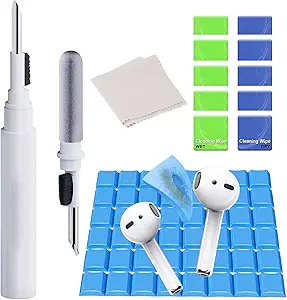 The cleaning kit is great. I was unsure what the blue stuff was for but realize it helps clean the mesh. Now that my ear pods are clean I have better sound. Must be gentle with the tool but has everything you need.