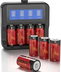 - MULTI COMPATIBILITY: Rechargeable batteries with Charger for Arlo VMS3130 VMC3030 3200 3330 3430 3530 Security Cameras, CR123A LED flashlights, video game consoles, appliances, medical equipment, calculators, memory backup and others electronic devices. 3.7V NiMH 800mAh High Capacity provides the best run time possible Ideal for rechargeable Arlo batteries for Arlo cameras.NOTE: FULLY CHARGE THE BATTERIES BEFORE FIRST USE.
