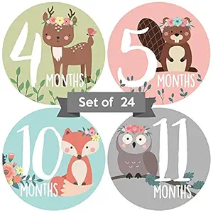 - PRETTY FLORAL WOODLAND ANIMAL DESIGNS 🌿 We painstakingly designed each sticker to ensure our baby girl milestone stickers can help you cutely track your baby’'s growth from just born, to sleeping through the night, to their first steps! The set includes a large variety of cute animals like a deer, fox, owl, bunny, birds, and more; you won't find these designs anywhere else!