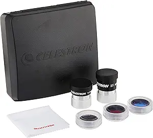 Makes a nice accessory kit for Celestron telescope. Nice complement of lenses and filters to observe the moon (filtered) and planets, especially Saturn and Jupiter. Has fold out eye piece for those of us who wear glasses or even those who do not as the eye cups filter out any side light. Lenses that came with my Celestron scope did not have the rubber eyepiece cups as I had on my larger scope that I gave to my daughter.