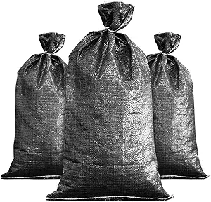 FAMI Empty Black Sandbags with Ties 16" x 25" - Woven Polypropylene Sand Bags, Sandbags for Flooding, Sand Bags Flood Protection(10 Bags)