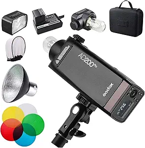 - 🌿 |Large Capacity Lithium Battery|: The Godox AD200 Pro Offers 500 Full Power Flashes with 0.01 to 1.8 sec. Recycling. Expanded Manual 9 stop range of power adjusts from full to 1/256 in 1/10th stop increments