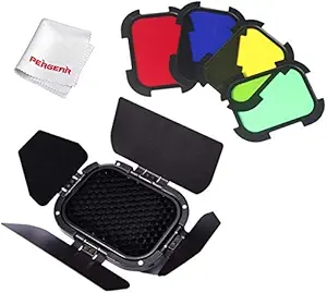 Godox BD-07 Barn Door with Detachable Honeycomb Grid and 4 Color Filters Compatible for Godox AD200 AD200Pro Pocket Speedlite Flash Head