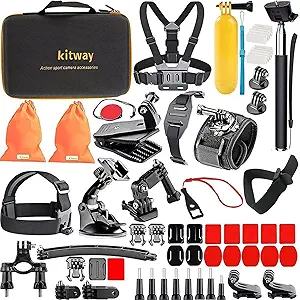 Kitway 65-in-1 Action Camera Accessories Kit for GoPro HERO10,9,8 Compatible with GoPro Max, Hero 7 6 5 4 3+ 3 2 1/EK7000/Wewdigi EV5000/DBpower N6/Crosstour (Accessories for Action Camera)