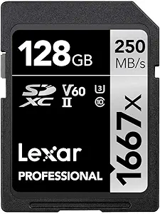 Purchased this 128GB 1667x Lexar for use in a Sony A7R3. It was replacing a perfectly good 64GB SanDisk 300MB/s UHS-II. I just needed more space for time lapses.