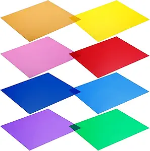 - Contains 8 sheets in 8 different colors, including red, yellow, orange, green, purple, pink, light blue, dark blue; Please don't attach the gel filters to modeling lamp or it will be melted