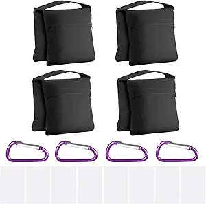 Neewer 4-Pack Photography Sandbag Sand Bags Saddlebag Design 4 Weight Bags for Photo Video Studio Stand Backyard Outdoor Patio Sports, Transparent PP Bag and Clips Included (Black)
