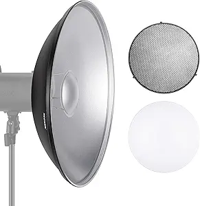 Very reasonably priced beauty dish that is great at diffusing light. It's an absolute must for portraits. Fits perfectly on my Neewer DS 300 strobe light.