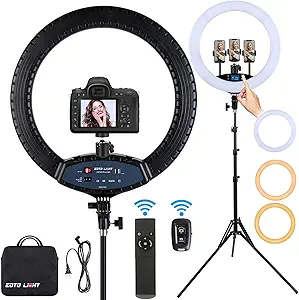 I purchased another ring light about a year and a half ago and it was good, but I needed another one so I searched Amazon and found this one, the price was amazing and the product was just as amazing, usually you get what you pay for. I didn’t pay much for this, but its functionality blew me away, it’s touchscreen, you can adjust the brightness with just one touch or use the remote, it comes with a remote control, a selfie Bluetooth controller, you can attach three devices at one time, oh this just really blew me away I would definitely recommend purchasing this ring light.