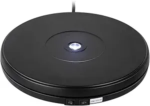 - 🌌【360 Degree Rotation & Pure Black Design】 Electric turntable drives the top rotation in omnidirectional, can be used to show your products 360 degrees or create 360-degree panoramic videos; Black photography turntable can be a sharp contrast to other goods, setting off the color of your products. Two practical designs allow merchandise display base to effectively display your products and boost sales.