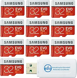 - Bundle includes (10) 32GB memory cards (Samsung Evo +) with adapter and (1) Everything But Stromboli (TM) Multi-slot Card Reader - Includes SD, Micro SD (TF), M2, and MS slots for easy transfer