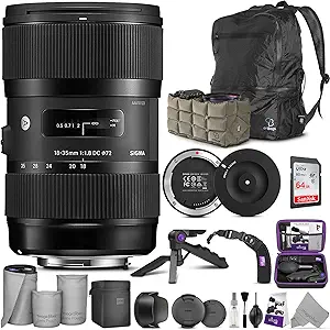 - INCLUDES: Sigma 18-35mm F1.8 Art DC HSM Lens + Sigma USB Dock + AirBag Packable Bag and Camera Insert + SanDisk 64GB C10 Ultra UHS-I SDXC Memory Card + Altura Photo Mini Tripod with Pistol Grip + Altura Photo Rapid Fire Wrist Strap + Altura Photo Hard-Shell Case + Altura Photo Cleaning Kit + 3 Sizes MagicFiber Microfiber Lens Pouch