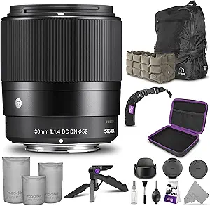 - INCLUDES: Sigma 30mm f/1.4 DC DN Contemporary Lens + AirBag Packable Bag and Camera Insert + Altura Photo Mini Tripod with Pistol Grip + Altura Photo Rapid Fire Wrist Strap + Altura Photo Hard-Shell Case + Altura Photo Cleaning Kit + 3 Sizes MagicFiber Microfiber Lens Pouch