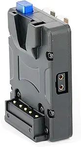 This v-mount plate is pretty good. The size is 88.5(L)mm*62(W)mm*35(H)mm and Weight: 110g. You have quick access D-tap output. It works with my FXlion batteries work very well. Using it with the Sony a7III. It looks robust, strong but still feels lightweight.