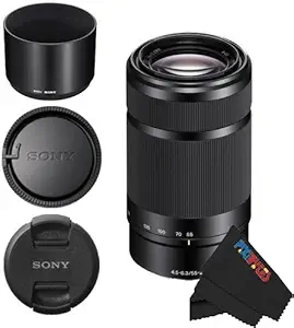 Sony E-Mount 55-210mm F 4.5-6.3 Lens for Sony E-Mount Cameras Bundle with PixiBytes Microfiber Cleaning Cloth (Black)