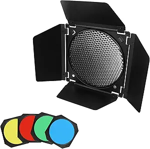Soonpho BD-04 Barn Door with Honeycomb Grid and 4 Color Gel Filters (Red,Yellow, Blue,Green) for Standard Reflector & Cloth
