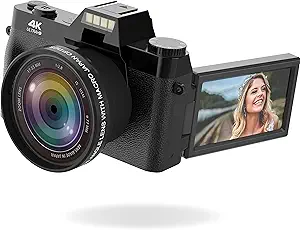 - ✔【VLOGGING CAMERA WITH FLIP SCREEN】Our digital camera delivers high-bit-rate 4K-resolution video at 30FPS and clear image at 48MP without missing any details. The 4k camera also supports 16X digital zoom (Auto focus is not supported). The tiltable viewing screen is perfect for video blogging and self-portraits. Your will like the curved rubberized grip on the front which you can wrap your finger around comfortably and not have to worry about dropping the video camera.